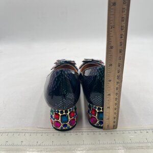 YDN Snake Print Pointed Toe Bow Pumps Colorful Rhinestone Block Low Heel Butterfly Slip On Fashion Party Dance Shoes