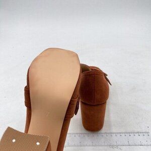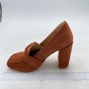 YDN Women Chunky High Heel Square Toe Loafer with Buckle Slip On Suede Office Pumps Shoes Brown