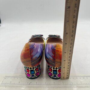 YDN Yellow Multi Pointed Toe Bow Pumps Colorful Rhinestone Block Low Heel Butterfly Slip On Fashion Party Dance Shoes