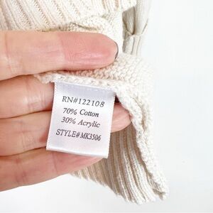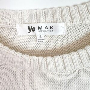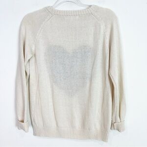YE MAK OFF-WHITE LONG SLEEVE PULLOVER SWEATER WITH BLACK CABLE KNIT HEART SMALL