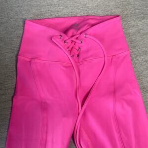 YEAR OF OURS Hot Pink Lace Up Leggings High Waist XS Extra Small