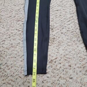 Black leggings with a crisscross waistband and side strip detail. Size S, pre-owned in great used condition.