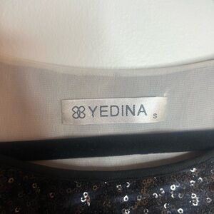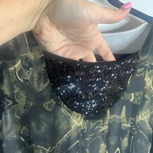YEDINA size S, long sleeve dress green and black, sequins, sheer