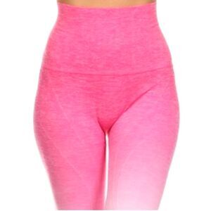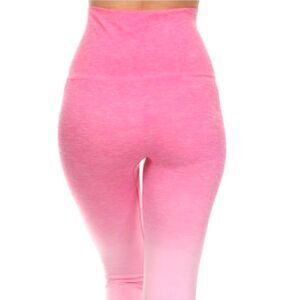 Yelete dip dyed pink/light pink ombre leggings. extra wide waistband to flatten, smooth and contour your stomach and waist line. say goodbye to slipping waistband and pulling your leggings up constantly during workouts. easy flip on style. these are dip dyed leggings with fold over waistband that has cover stitching in bold heathered colors. this pair also has the long skinny leg style that makes them comfortable and easy to pull on.