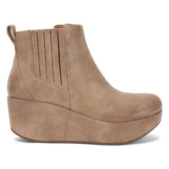 These boots sport a unique fusion of classic Chelsea boots and clog wedge heels with mild arch support.