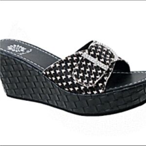 YELLOW BOX Y2K 1990’s Scrub Houndstooth Wedge Sandals Sz 8