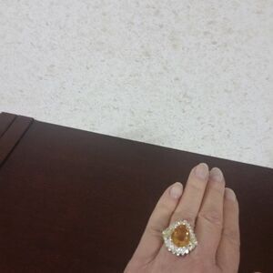 NATURAL! YELLOW CITRINE PEAR SHAPE. MAIN STONE 11.50 CT.; 925 STERLING SILVER RING