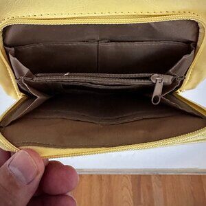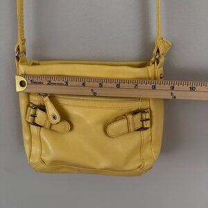 YELLOW CROSSBODY BAG, ,ULTIPLE POCKETS WITH ZIPPERS AND BUCKLE DETAILS