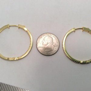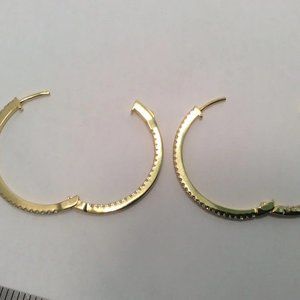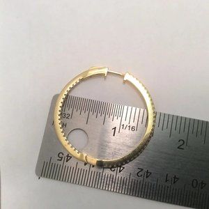 YELLOW Solid 925 Sterling Silver POLISHED HOOPS CZ EARRINGS 1 1/2''