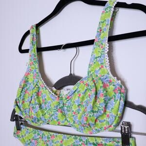 YELLOW THE LABEL Knox Lace Trim Two Piece Bikini Floral Palasides Women's L