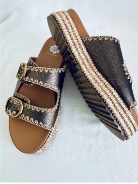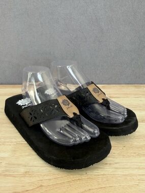 YELLOWBOX BLACK Mellow Mat SILVER BEADED Sandals WOMENS 7 Suzanne