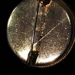 MEASURES 1 1/8” IN DIAMETER, PIN BACK IS APPROPIATE FOR THE TIME. VERY GOOD VINTAGE CONDIITON.
