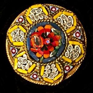 YELLOW RED FLORAL ITALIAN MICRO MOSAIC PIN BROOCH