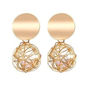 **YESENAI* Gold x Pearl Braided Ball Design Fashion Earrings