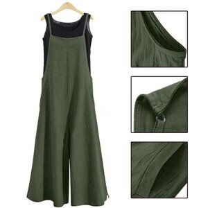 YESNO Dark Army Green Wide Leg Baggy Cotton Romper - Size Small