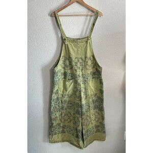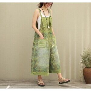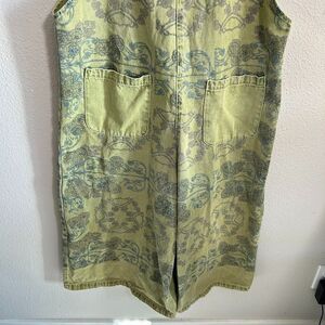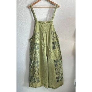 YESNO Womens Boho Cropped Wide Leg Jumpsuit Overalls M Green Lagenlook Cotton