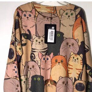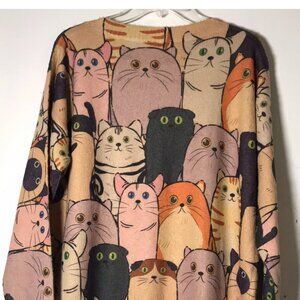 YESNO Women’s Cat Sweater Pullover Oversized Wool Blend Allover Size Medium
