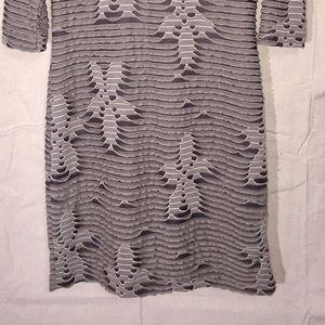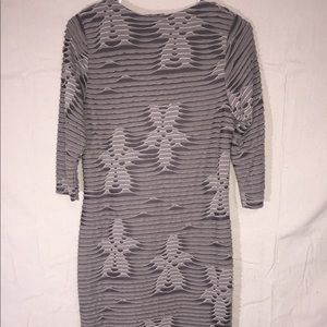 YEST Dress with 3/4 sleeve with scoop neck. Dress has light and dark grey image.