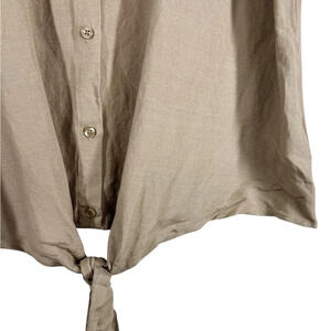 YEST Tan Linen Lightweight Collared Sleeveless Button Blouse with tie waist XL