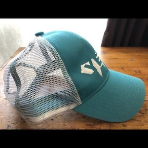 It’s a classic trucker, teal in color hat. It features a mesh back for added ventilation😎