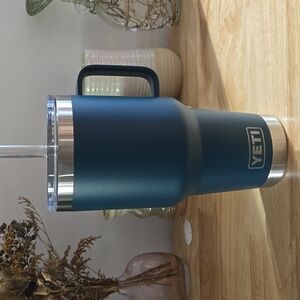 Durable YETI tumbler. Keeps drinks hot or cold. Convenient handle for easy grip.