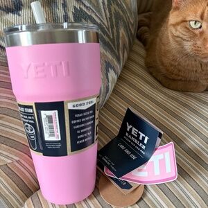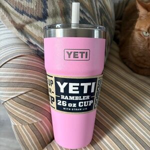YETI Rambler 26 ounces with straw lid in sold out, rare color POWER PINK. NWT