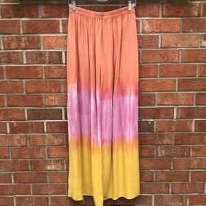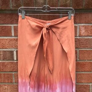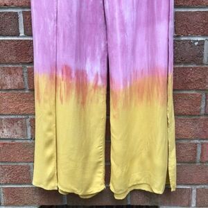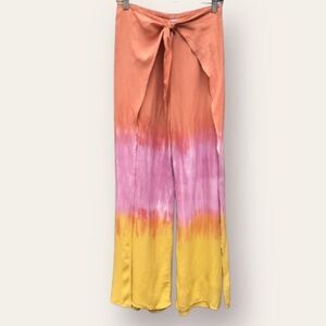 Young Fabulous & Broke Abigail Dip Tie Dye Wrap Tie Front Wide Leg Side Slit Palazzo Pants, sz Medium, Full Side Slits Split Front/Back, Beach Cover Style, Loose & Flowing, Elastic Back & Tie Front, in great pre-owned condition