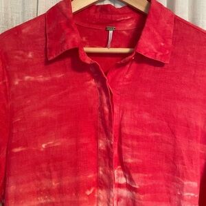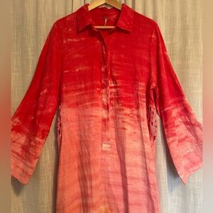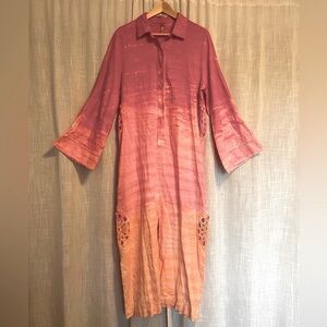 YFB Linen Pink Orange Ombré Tie Dye Kaftan Maxi Dress Size L