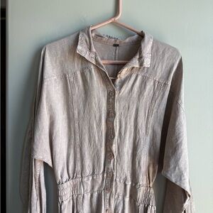 YFB Louie Long Sleeve Linen Jumpsuit in Blush Pink