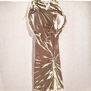 beige and white tie dye print long dress