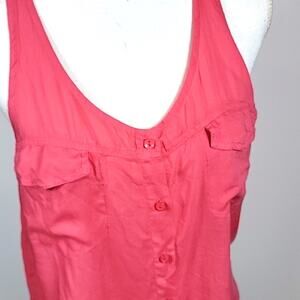 YFB Young Fabulous & Broke Button Down Accent Pockets Coral Tank Blouse - small