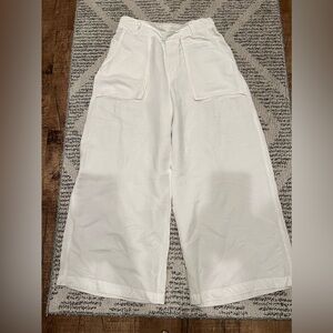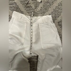 Pre-owned condition, size M, no material tag but it seems to be a linen blend, two front pockets, elastic waist band, pull-on style, belt loops, semi sheer. casual spring summer beach wear cruise wear resort wear breathable lightweight . A1