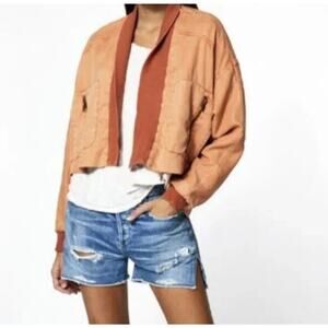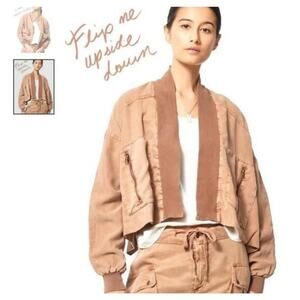 Young Fabulous & Broke size medium beige jacket that can be worn more ways than one. Measures 24” from armpit to armpit and 21” long.
