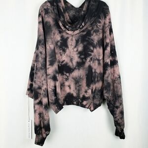 Young Fabulous & Broke tie dye sweatshirt hoodie Activewear outerwear Slouchy shoulder sleeves and banded at waist and wrists. Drawstring hoodie. Gorgeous black and plum purple tie dye. An amazing unique piece