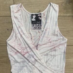 Nothing says you're weekend ready like this Young Fabulous and Broke Cadler Dress. This super soft and stretchy dress boasts a light and draped fabrication, flattering wrap silhouette, and ombré tie dye in mauve and dusty purple. Features a hook and eye on the surplice V neck and an elegant wrap hem that will have you feeling like a Greek goddess. One small pin hole on the back left shoulder as pictured , In excellent like new condition otherwise, sold out on revolve, Size Small