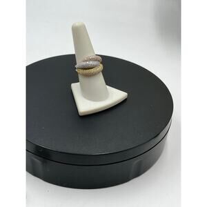 YGI 925 CN Tri-tone Sparkling Micro Pave CZ Overpass Iced Chunky Ring Sz 8.5