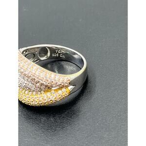 YGI 925 CN sterling silver pave rings, which feature cubic zirconia (CZ) stones and come in tri-tone finishes, including white (silver-toned), yellow gold-toned, and rose gold-toned plating. Sz 8.5