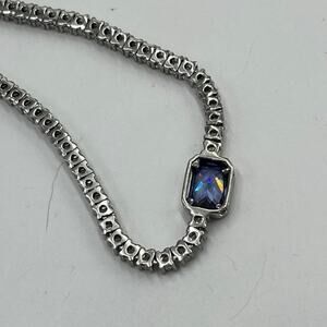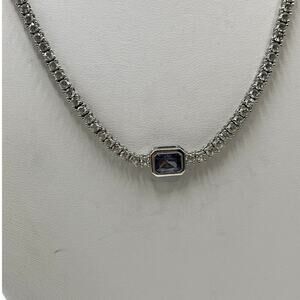 YGI Sterling Silver lolite/Tanzanite Emerald Cut Center Stone CZ Tennis Necklace
