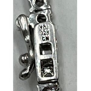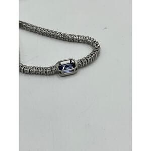 Unique Accent: Features a captivating emerald-cut center stone, exhibiting a beautiful deep blue/violet hue, consistent with either natural lolite or Tanzanite. The tennis style is a continuous line of clear, brilliant-cut CZ stones, creating maximum sparkle.