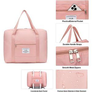 ⚡YGR Travel Duffel Bag, Personal Item Bag for Spirit Airlines, Foldable Sports Tote Gym Bag, Carry on Luggage Shoulder Bag, Weekender Overnight Bag for Women, Female, Pink⚡