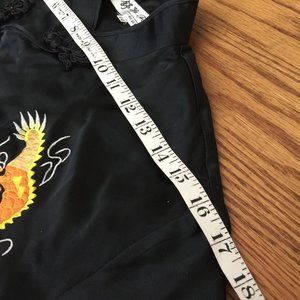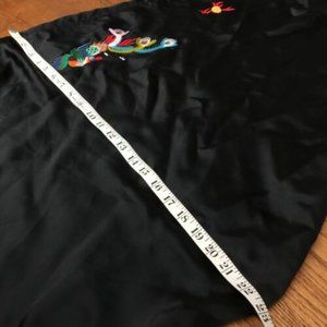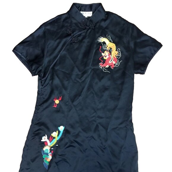YI FANG CHEONGSAM DRESS WOMENS 44 BLACK SATIN ORIENTAL EMBROIDERED DRAGON VTG