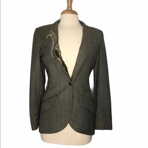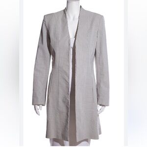 YIGAL AZROUEL Elegant Beige Women's Jacket, Nubby Linen Blend, Hook Eye Front. 6