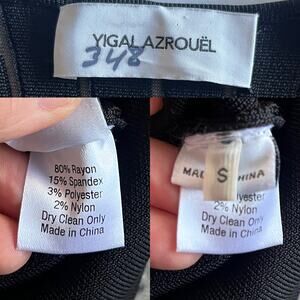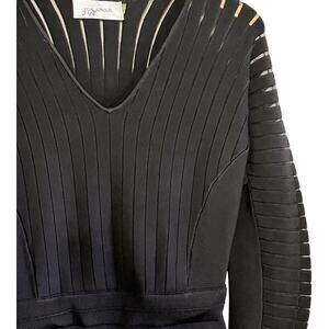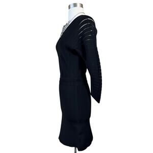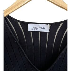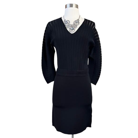 YIGAL AZROUEL Knit Dress Black V-Neck Sheath 3/4 Sleeves Designer Small EUC
