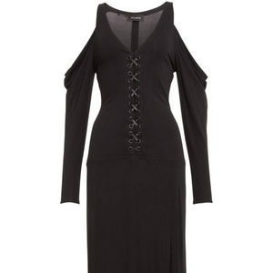 YIGAL AZROUEL LACE UP COLD SHOULDER MIDI DRESS BLACK SIZE 10
