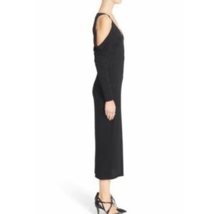 YIGAL AZROUEL LACE UP COLD SHOULDER MIDI DRESS BLACK SIZE 10 $999