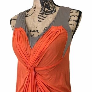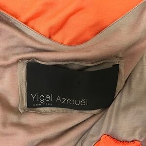 YIGAL AZROUEL Orange & Tan Draped Grecian Dress
