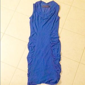 Beautiful cowlneck dress with crisscross back. Ruched detailing is flattering for all body types!