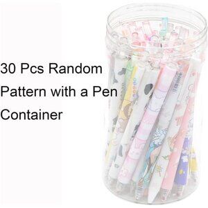 30 Pcs Fine Point Cute Pens With a Pen Holder, 0.5mm 30 Different Random Styles Black Ink Kawaii Gel Pens for Office, Study, Gift and Home Supplies