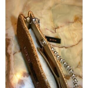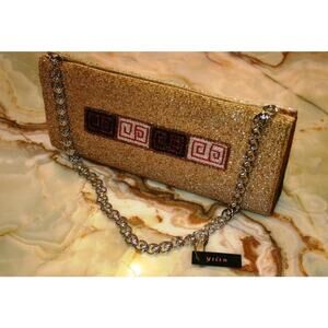 YILIN Gold Hand Beaded Evening Hand Bag With Silver Chain Strap