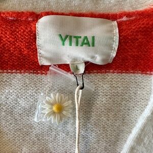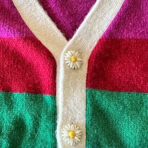 Stand out with this whimsical YITAI stripe cardigan, featuring vibrant multi-color stripes and charming flower-shaped buttons. Made from a cozy blend of mohair, wool, acrylic, and nylon, this cardigan is the perfect mix of comfort and bold design.